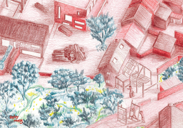 Moi je suis agent de débitumage territorial. Mon métier n’existait pas avant. On nous a formés vite, très vite, avec les protocoles empruntés aux chantiers de dépollution nucléaire : casque anti-bruit renforcé, combinaison coupe-poussière, gants anti-perforation, chaussures d’impact. Parce que sous le bitume, il y a parfois des surprises : des traces d’hydrocarbures, des conduites anciennes qui suintent encore, des métaux lourds infiltrés par des décennies de ruissellement. La machine qui sert à chauffer et à décoller l’enrobé elle hurle toute la journée. Le sol vibre sous mes pieds. Tout mon corps doit se contracter pour tenir l’outil, c’est lourd et instable, presque vivant. Le soir, mes bras tremblent encore, comme si je pouvais pas m’enlever l’engin des mains. On travaille par couches. On enlève d’abord la surface noire, puis on rabote le socle minéral, jusqu’à ce que la terre apparaisse, elle est pâle et poussiéreuse.C’est comme si petit à petit perdait ses veines. On dissout les rues, on défait les carrefours. Les chemins que les gens prenaient se fragmentent, ça fait comme des cicatrices ouvertes.