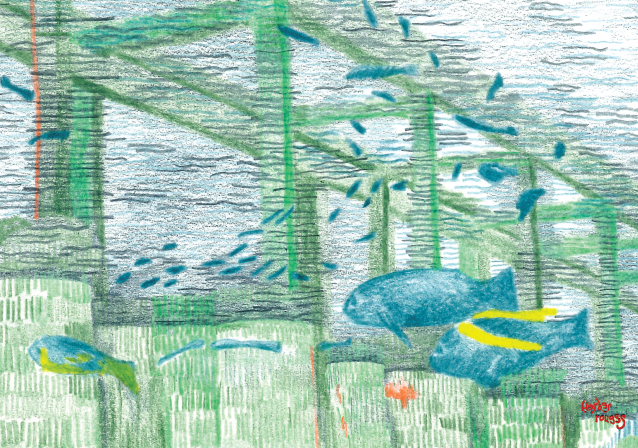 Se frayant un passage, dans les eaux saumâtres